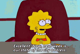 Excellent. Now, next week is our state of the city address.