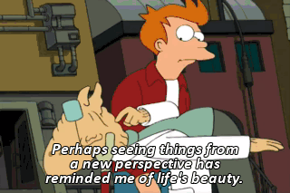Perhaps seeing things from a new perspective has reminded me of life's beauty. Or perhaps my new posture is causing blood to pool in the back of my brain, resulting in a mild delirium.