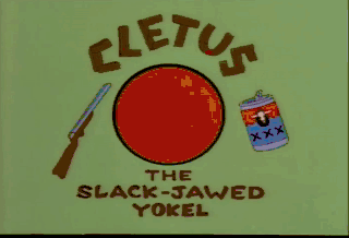 Some folk'll never eat a skunk but then again Some folk'll Like Cletus the Slack-jawed Yokel Hey. What's goin' on on this side?