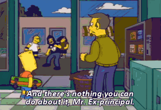 And there's nothing you can do about it, Mr. Ex-principal. That's not true. I can buy a new pair. No, I can't. I needed those. I really did.