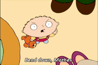 Bend down, Mother. Yes, honey? How dare you sully my good name by spreading your slanderous filth! Stewie, no hitting! Use your words. He's probably just ashamed, Lois.