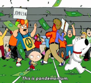 This is pandemonium. (GUN FIRING) (AIR HISSING) (BOTH SCREAMING) Quick, Brian, get on!