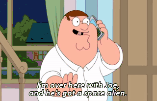 I'm over here with Joe, and he's got a space alien. (GUN FIRING) (ALL SCREAM)