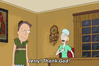 Jerry! Thank God! God? God's turning people into insect monsters, Beth. I'm the one beating them to death. Thank me. Thank you, Jerry. Thank you. Take a good look down there, Marty, and soak it in,