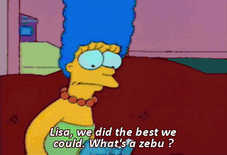 Lisa, we did the best we could. What's a zebu ? It's like an ox, only it has a hump and a dewlap. Hump and dewlap. Hump and dewlap. Hmm.