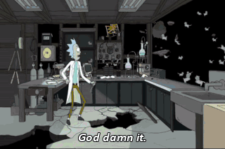 God damn it. Rick! Oh! Marty, where's your collar? I'll fix it, I dropped it, What the hell? What have you done to me, Marty?