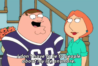 I don't have to lie to people about my life anymore. Oh, I am so happy for you, Peter. What the hell happened to you? I fell down the stairs. Oh, you should be more careful.