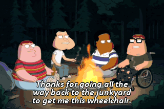 Thanks for going all the way back to the junkyard to get me this wheelchair.