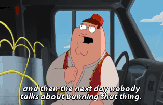 and then the next day nobody talks about banning that thing.