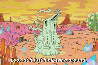Look at it just lumbering around. lt defies all logic -- that thing. Yeah, Rick, I get it. We're surrounded by monsters. That's kind ofthe reason why I want to leave. Ta-ta-ta-ta-ta-ta. Marty, you see this?