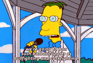 we're going to ban such barbaric sports as bullfighting and cockfighting.