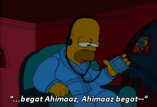"...begat Ahimaaz, Ahimaaz begat--" "And Amiriah onward, Amiriah begats Ahitub, Ahitub be--" "Shallum begat Hilkiah."