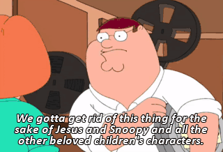 We gotta get rid of this thing for the sake of Jesus and Snoopy and all the other beloved children's characters. Let's go!