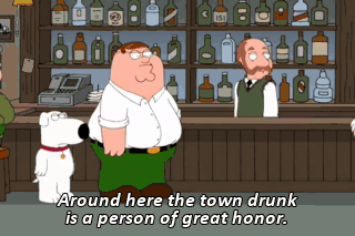 Around here the town drunk is a person of great honor.