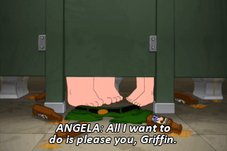 ANGELA: All I want to do is please you, Griffin. Well that was a good idea you had dunking your hand in the toilet.