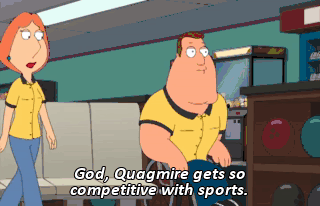 God, Quagmire gets so competitive with sports. Hey, Quagmire, it's just a game. Take it easy. I'm not gonna take it easy! These guys are going down! You're going down in front of all these people!