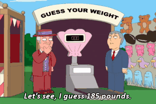 Let's see, I guess 185 pounds. Wrong. I'm 95% helium.