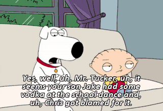 Yes, well, uh, Mr. Tucker, uh, it seems your son Jake had some vodka at the school dance and, uh, Chris got blamed for it.