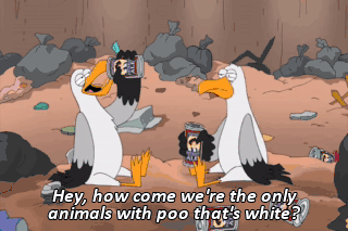 Hey, how come we're the only animals with poo that's white?