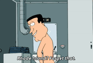 Rhode Island? Forget that. I'm taking you out for some shore leave. Does this look like a "Q" to you? No.