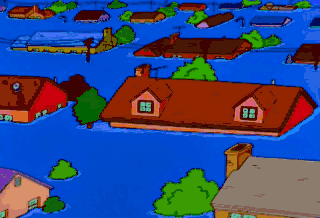 Ohh! I hate these flood pants. Hey, they're working! My feet are soaked, but my cuffs are bone-dry! Everything's comin' up Milhouse!