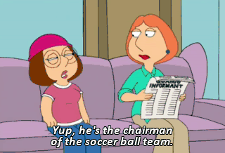 Yup, he's the chairman of the soccer ball team. Well, all right. Make sure you practice safe sex, Meg. (LAUGHING) You little liar! Roger Williams Park?