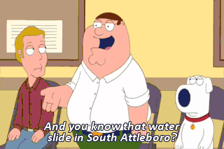 And you know that water slide in South Attleboro? (CHILDREN LAUGHING) Yeah! Water slide! Summer fun! It was the greatest day of my life, and I owe it all to alcohol.