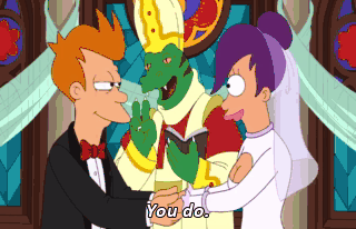 You do. Do I, Turanga Leela, take you, Philip J. Fry, to be my lawful wedded husband? Uh, yes? Absolutely. (GRUNTING) There it is again. Leave my wife alone, you glimmer.