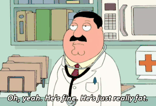 Oh, yeah. He's fine. He's just really fat. Oh, thank God! Wait, wait, wait. Hang on a second. Did you just say I was fat?