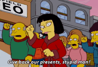 Give back our presents, stupid man!