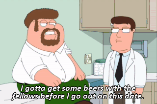 I gotta get some beers with the fellows before I go out on this date. (LAUGHS) How charming and chubby. I'm rooting for you. All right, Mr. Griffin.