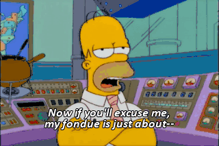 Now if you'll excuse me, my fondue is just about-- D'oh!