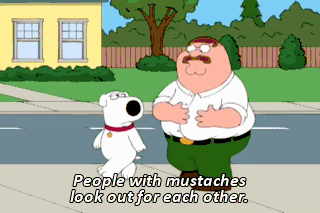 People with mustaches look out for each other. Hey. Oh, hey! MAN: Hey! Hey. Jeffrey, Peter Griffin has a mustache! No way! Way! Ohhh! I know! Oh, my God, Peter, look! McBurgertown is on fire!