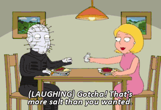 (LAUGHING) Gotcha! That's more salt than you wanted. WOMAN: Hello, boys. Wow, 18-year-old Lois. Son of a bitch.