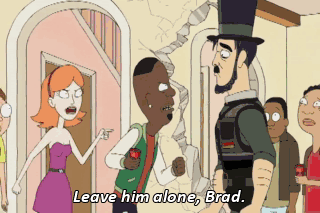 Leave him alone, Brad. Stay out ofthis, Jessica! Kick his ass, Brad! Kick his ass! ALL: Kick his ass! Kick his ass! Brad!