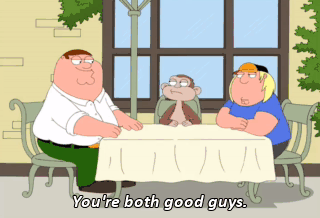 You're both good guys. And that's why it's important for you to reconcile your differences. I wasn't able to do that, and that's why I wound up living in a closet for nine years. Chris, I know you're angry,