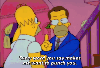 Every word you say makes me want to punch you. In my home, could you just kick me in the butt?