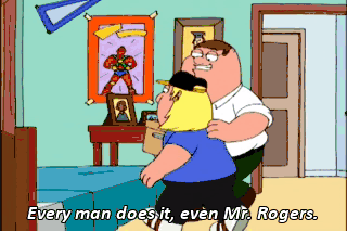 Every man does it, even Mr. Rogers. Hello, neighbor. ohhh! But peeping can be dangerous, so I brought you this. Wow! Miss December!