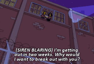 (SIREN BLARING) I'm getting out in two weeks. Why would I want to break out with you? (SWOONING) Well, you do look pretty in the moonlight. (GRUNTS)