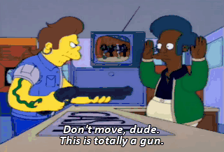 Don't move, dude. This is totally a gun. I didn't do it. And then the boy says the thing--