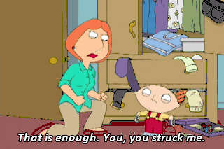 That is enough. You, you struck me. Oh, my God. Stewie, honey, I am so sorry. Are you okay, sweetie?
