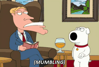 (MUMBLING) Uh... I'm sorry? (MUMBLING) Uh... Yes? (MUMBLING)