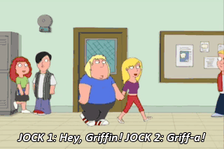 JOCK 1: Hey, Griffin! JOCK 2: Griff-a! Griff-amano! (GRUNTING GIBBERISH)