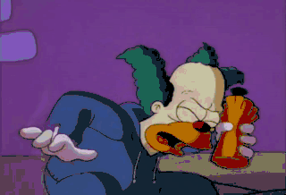 and they took away my pass. That's no life for a famous clown. Well, if it'll make you feel any better, Krusty, you can punch me in the face. Nah, forget it. Go home, kid.