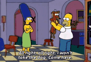 All right, all right. I won't take the dog. Come here. Aw.