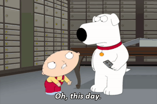 Oh, this day. (EXCLAIMS IN PAIN) You stink! And now I'm trapped in here with you and your stink because you were too stupid to call somebody who could help us! That really hurt.