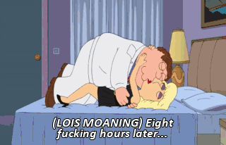 (LOIS MOANING) Eight fucking hours later...
