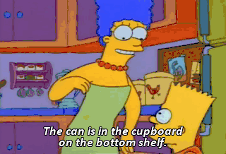 - The can is in the cupboard on the bottom shelf.