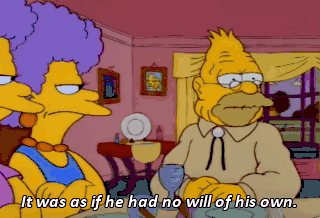 It was as if he had no will of his own. Isn't that true, Homer ? Yes, Dad.