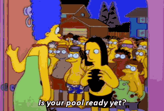 Is your pool ready yet? Bart, are all these children friends of yours? Friends and well-wishers, yes. - Hey, Bart! Hiya, Bart! - Hey, Bart! Hello, Mrs. Cumberdale.